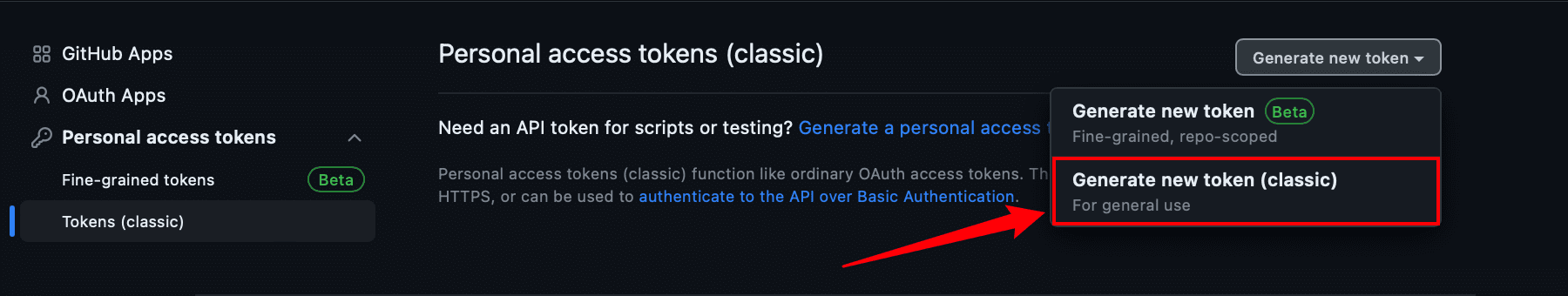跳转后,假如你还没有创建口令,依次点击Generate new token > Generate new token(classic):
